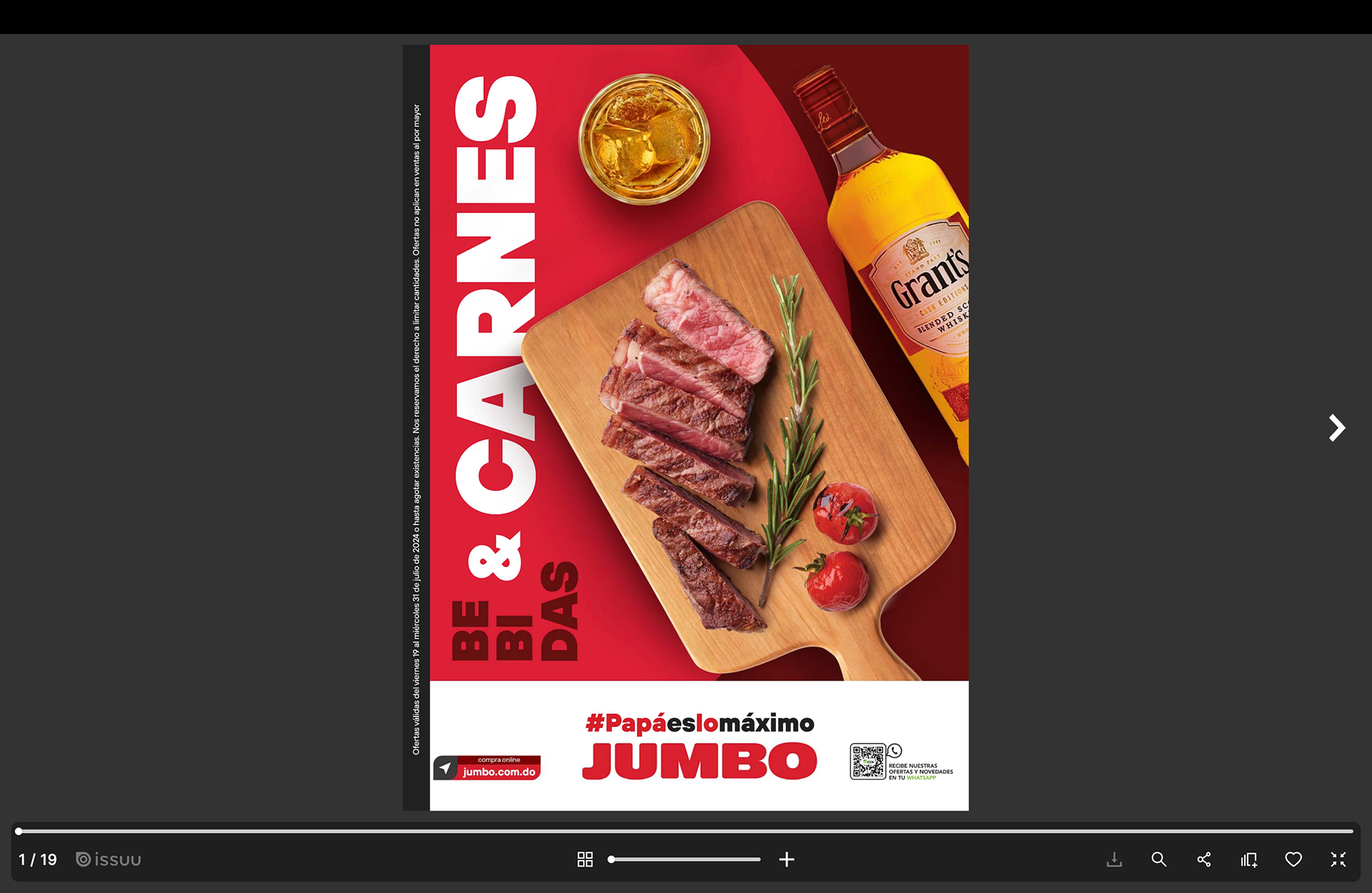 I worked on the layout design and image manipulation of a 19-page digital catalog for Jumbo's "Bebidas & Carnes" campaign, following the promotional theme #PapaEsLoMáximo.
